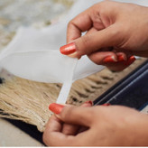 لبه فرش را برگردانده و ریشه ها را به سمت داخل فرش مرتب کنید.